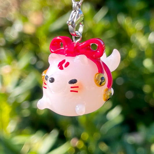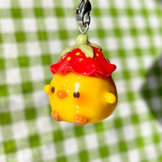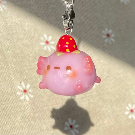 The colour gradient glittery pink shade shimmers under the light in a very beautiful way, and the strawberry goes so well with the charm. Actually I didn't know what a real axolotl looked like, this charm captured it so well it's adorable.