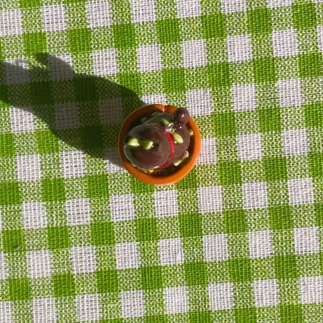Thin Glaze(4 layers of fimo gloss varnish): Shiny but not smooth. Fragile (handle with care). Not fully waterproof. Keep away from water.