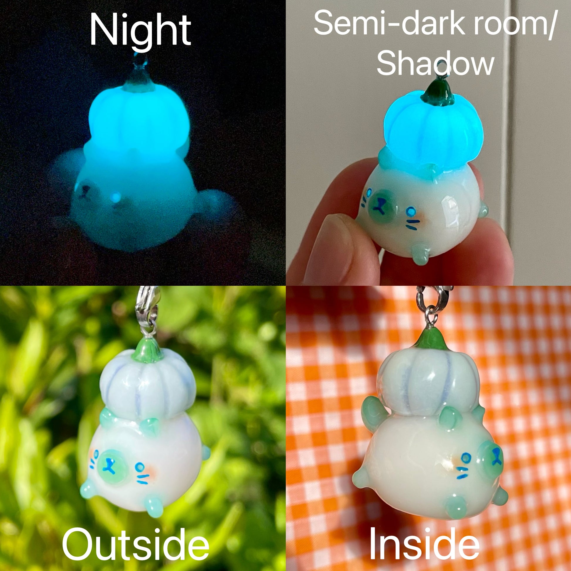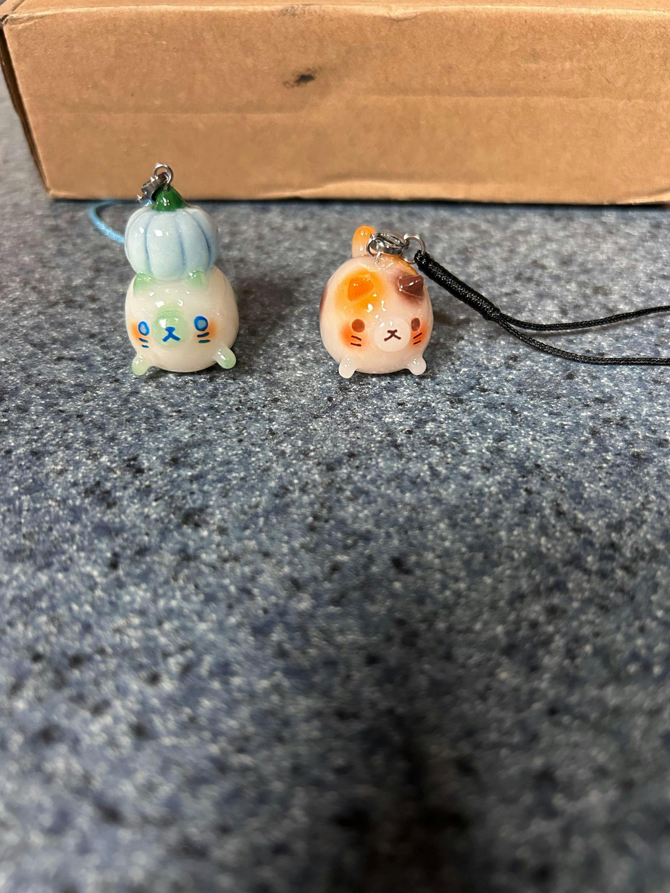 Thin Glaze(4 layers of fimo gloss varnish): Shiny but not smooth. Fragile (handle with care). Not fully waterproof. Keep away from water.