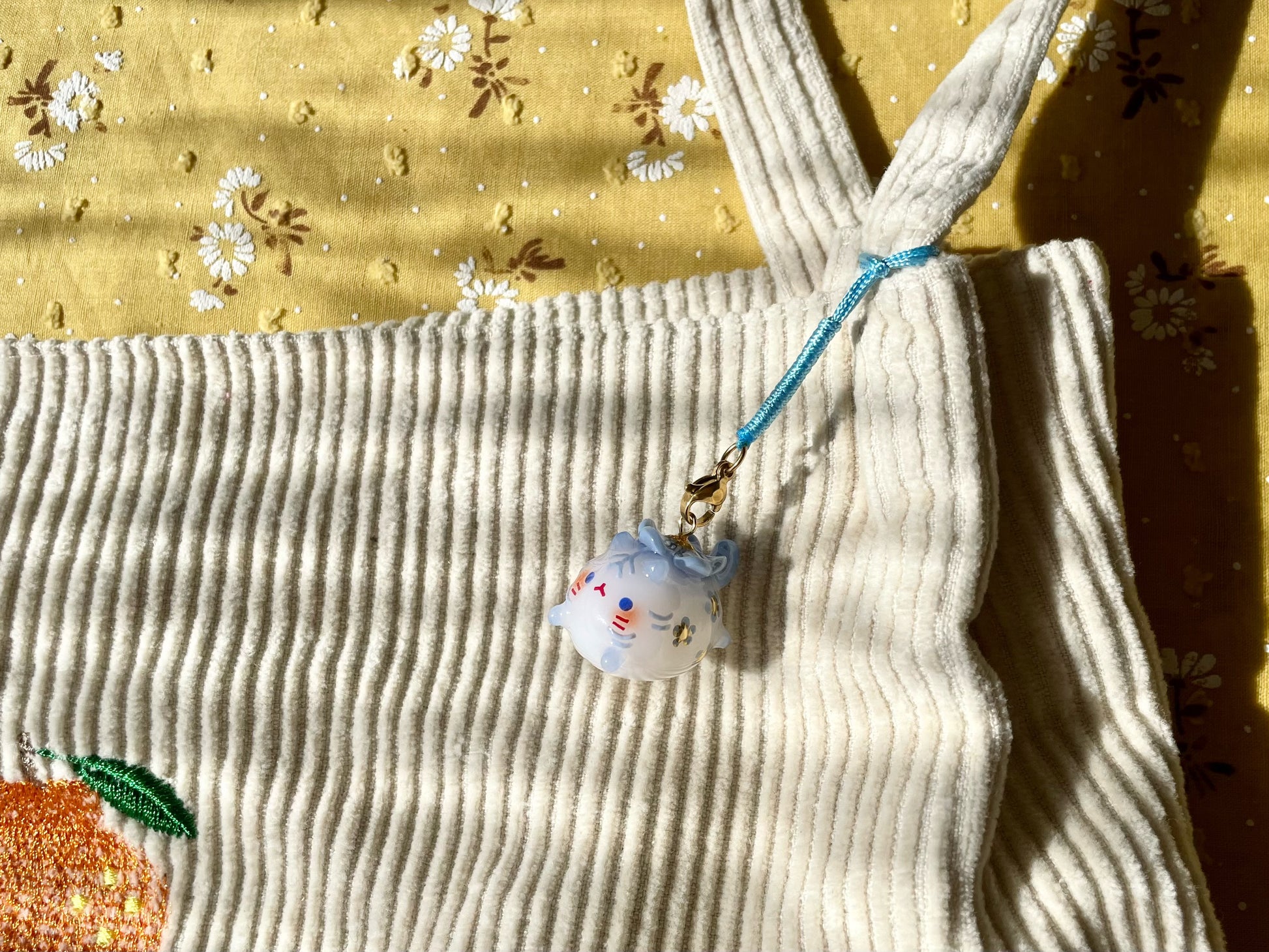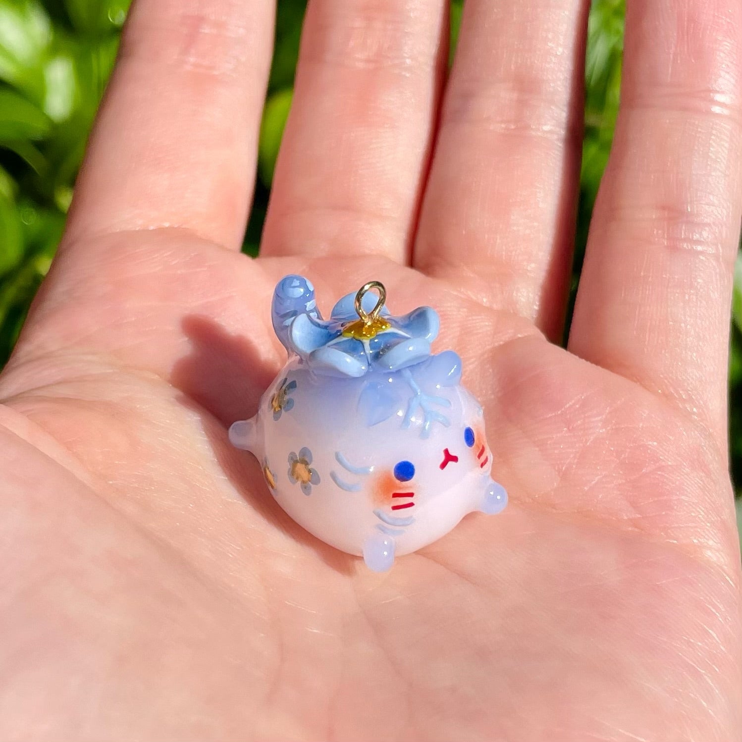 Thin Glaze(4 layers of fimo gloss varnish): Shiny but not smooth. Fragile (handle with care). Not fully waterproof. Keep away from water.