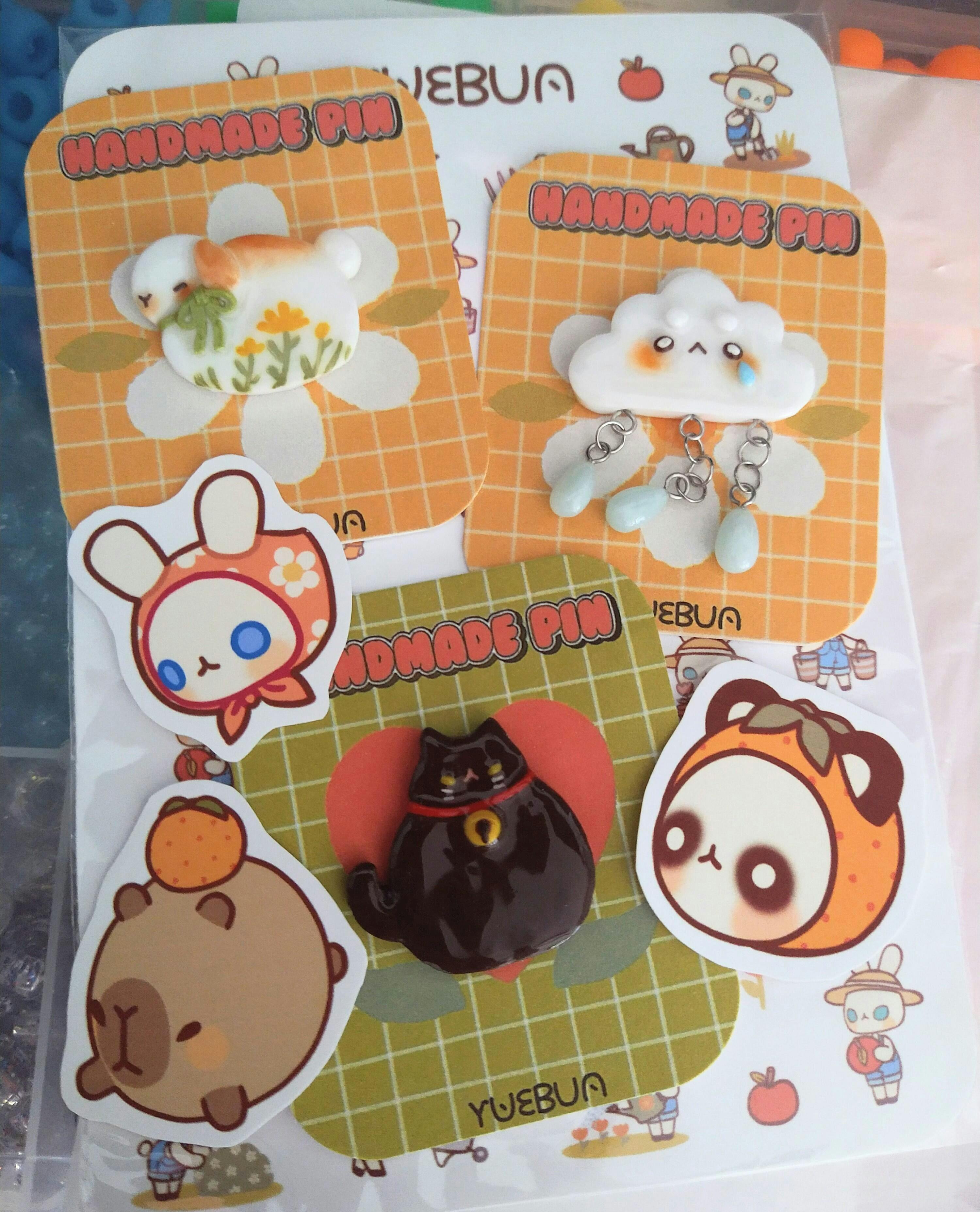 Thin Glaze(4 layers of fimo gloss varnish): Shiny but not smooth. Fragile (handle with care). Not fully waterproof. Keep away from water.