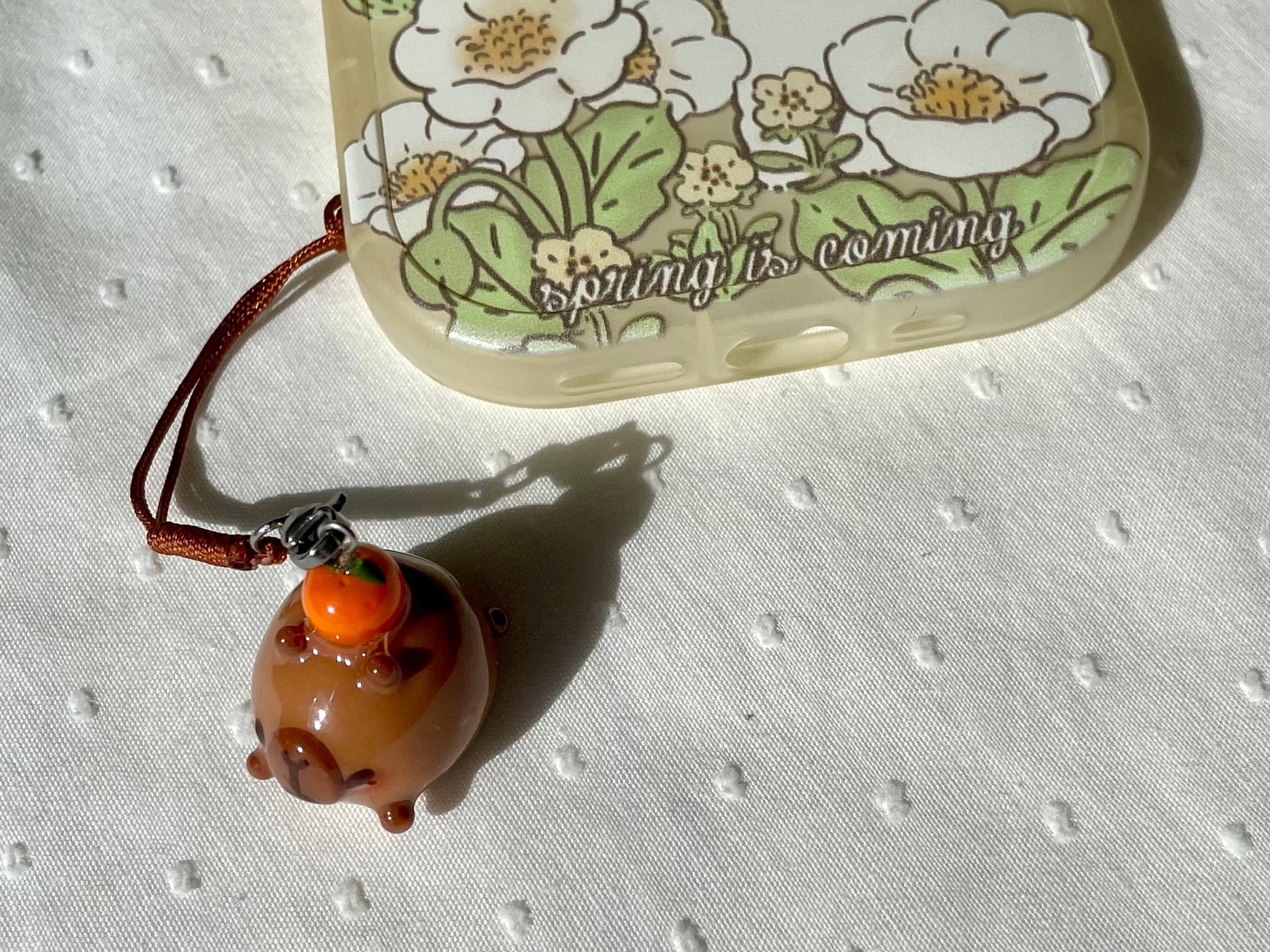 Thin Glaze(4 layers of fimo gloss varnish): Shiny but not smooth. Fragile (handle with care). Not fully waterproof. Keep away from water.