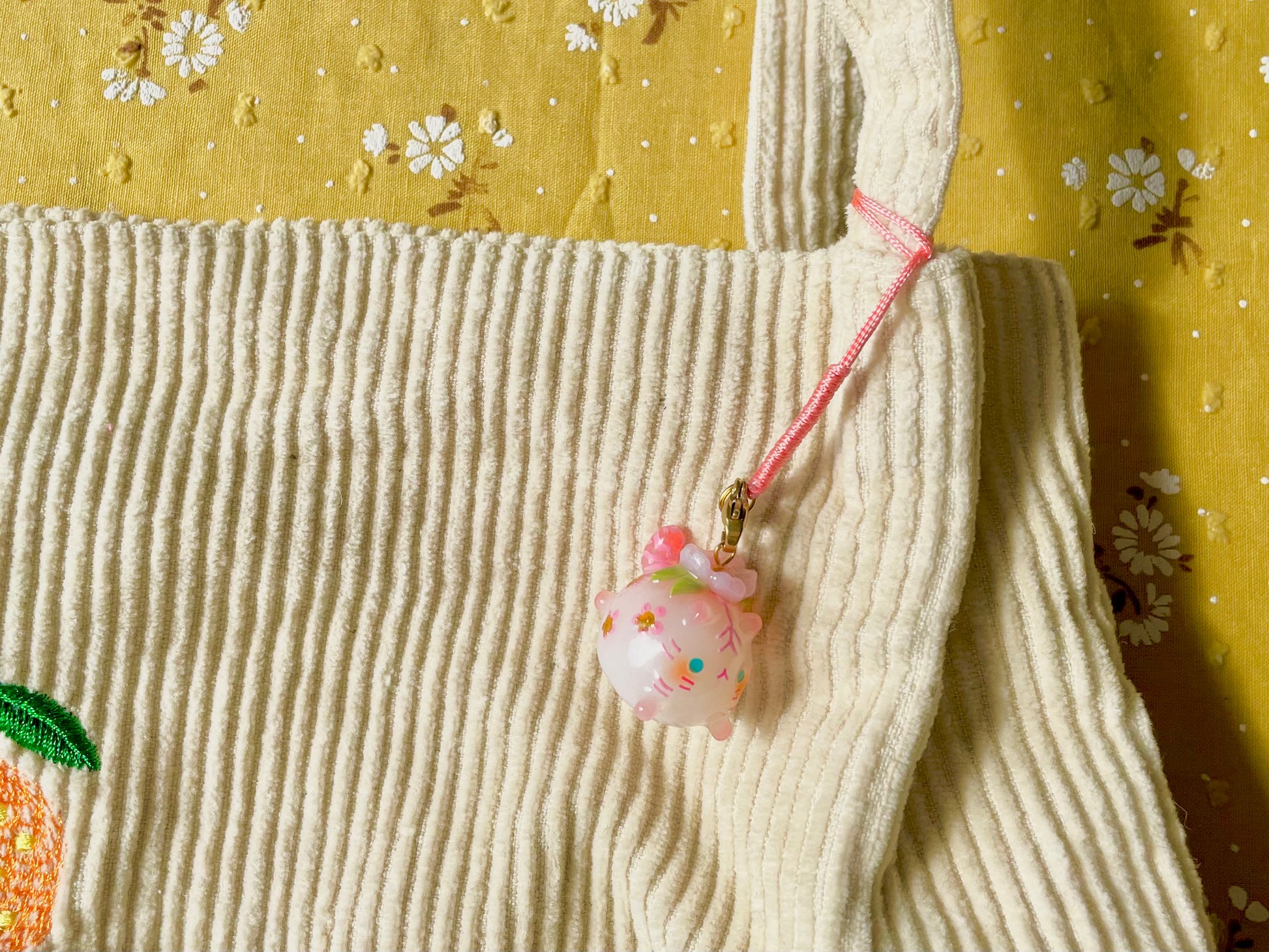 Thin Glaze(4 layers of fimo gloss varnish): Shiny but not smooth. Fragile (handle with care). Not fully waterproof. Keep away from water.
