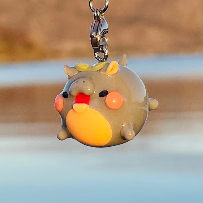 Thin Glaze(4 layers of fimo gloss varnish): Shiny but not smooth. Fragile (handle with care). Not fully waterproof. Keep away from water.