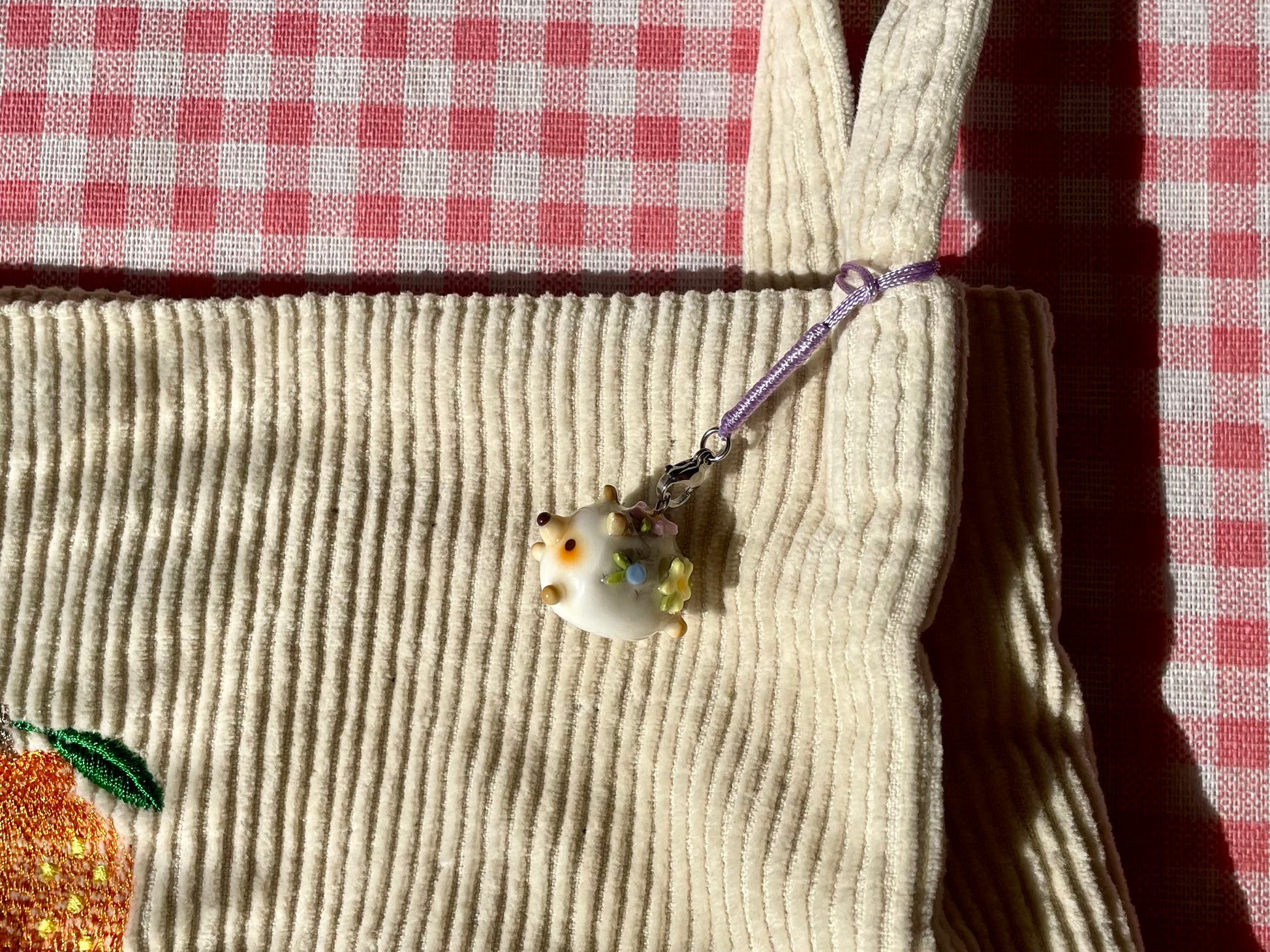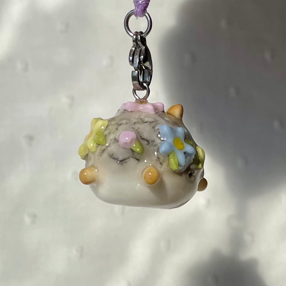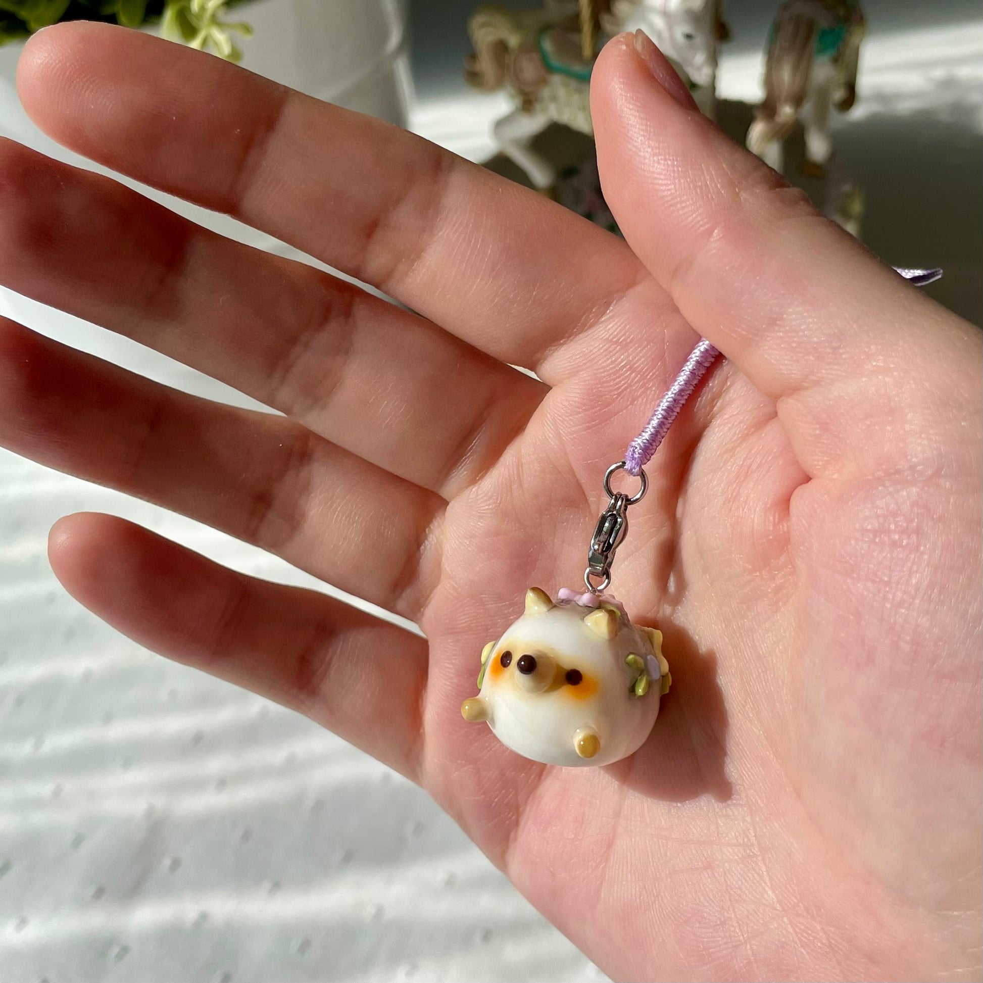 Thin Glaze(4 layers of fimo gloss varnish): Shiny but not smooth. Fragile (handle with care). Not fully waterproof. Keep away from water.