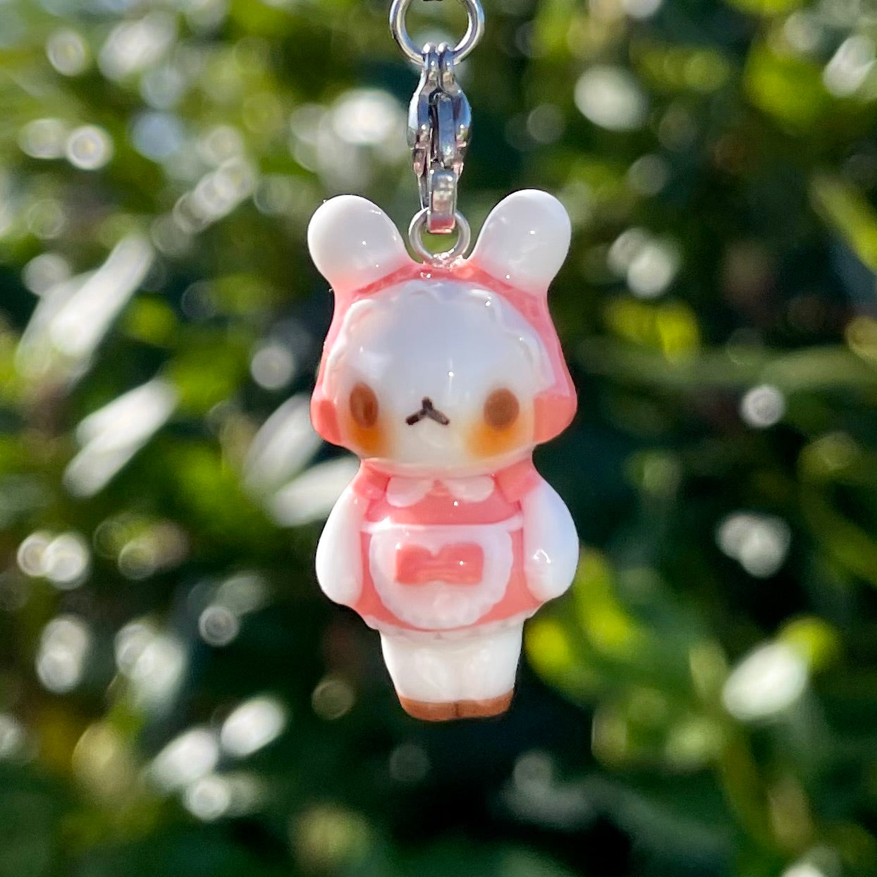 Thin Glaze(4 layers of fimo gloss varnish): Shiny but not smooth. Fragile (handle with care). Not fully waterproof. Keep away from water.