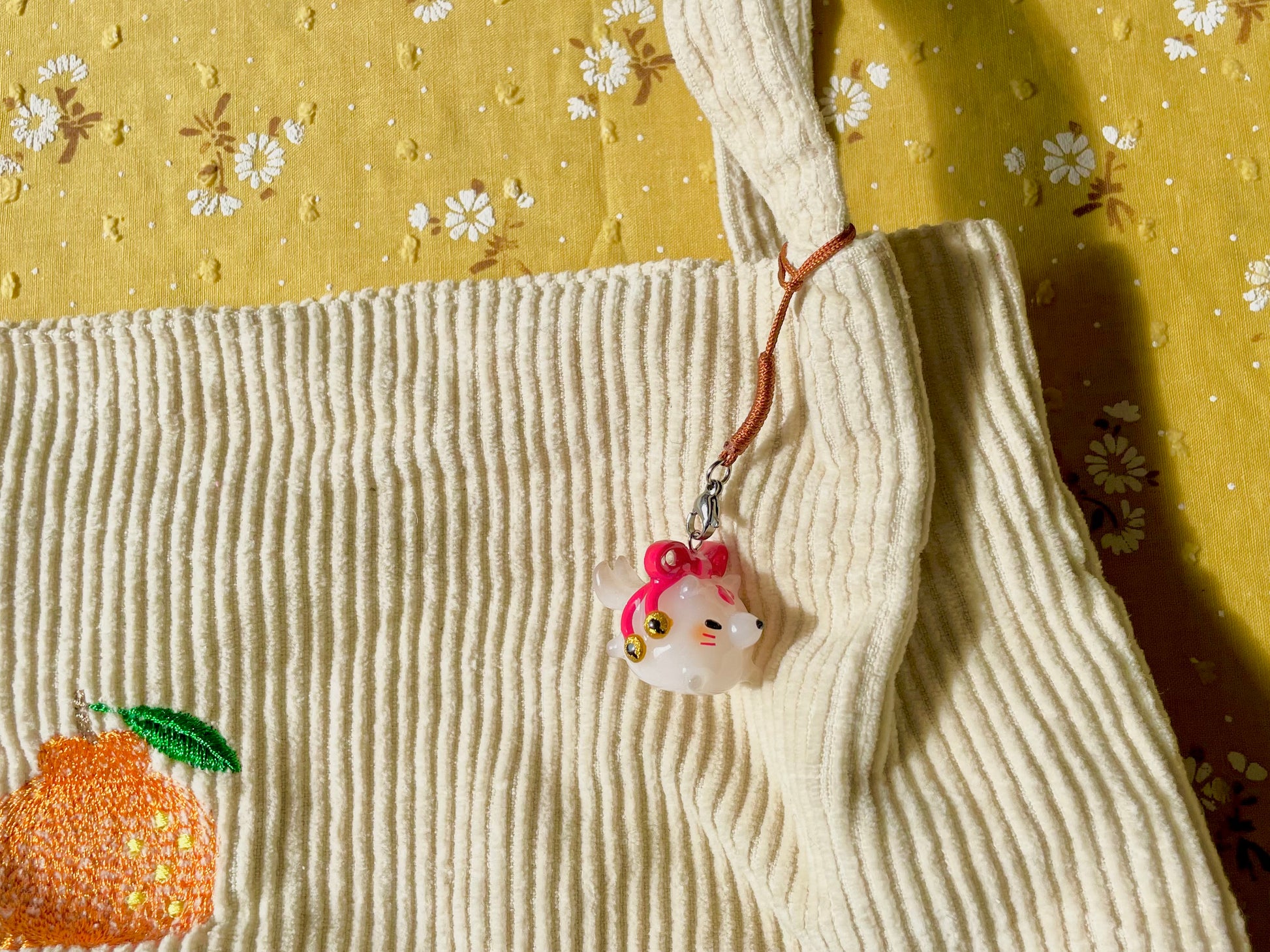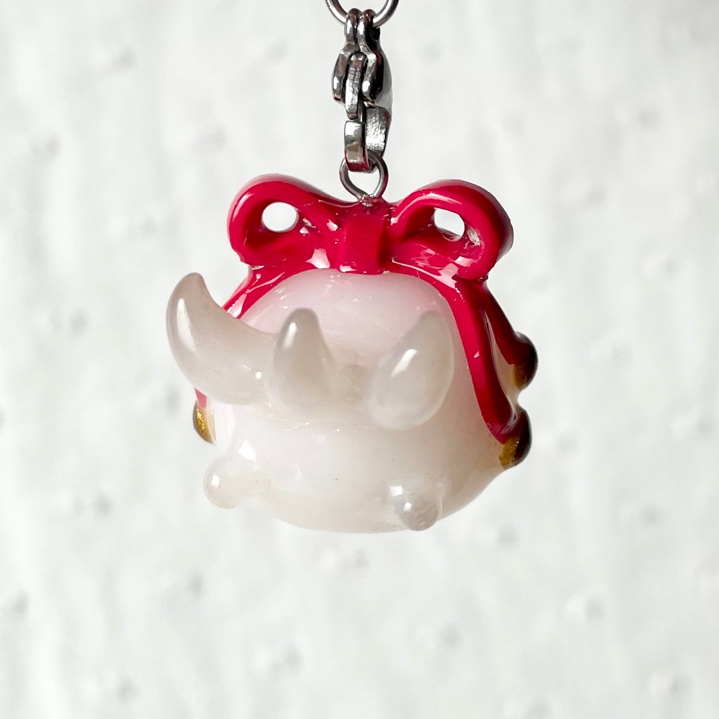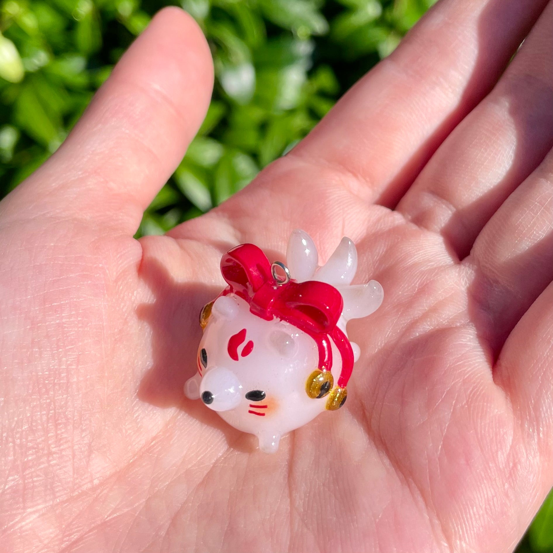 Thin Glaze(4 layers of fimo gloss varnish): Shiny but not smooth. Fragile (handle with care). Not fully waterproof. Keep away from water.